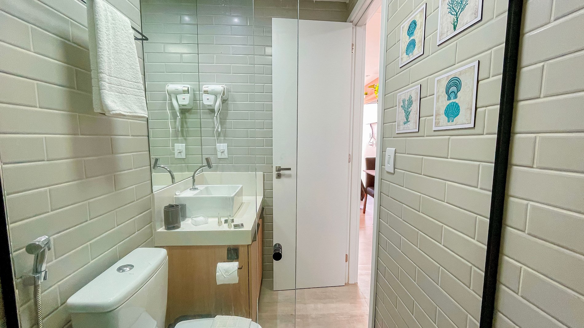 Living provides bed and bath linens, as well as complimentary amenities. The flat features air conditioning, a Smart TV, and a dining table with chairs. The kitchen includes utensils for meal preparation, such as a sandwich maker, cooktop, pots, and a coffee maker. The apartment also has a hairdryer. The building offers a pool and a laundry room available for guests. We provide a crib, hammock, and beach chairs, SUBJECT TO AVAILABILITY.