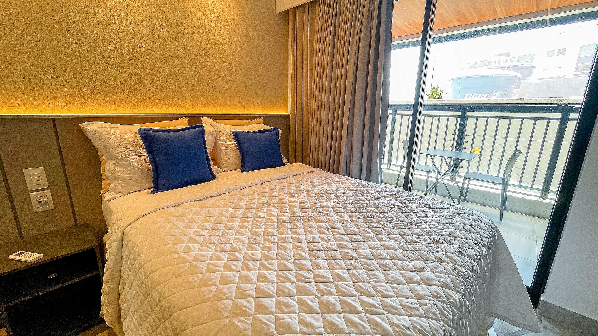 El Flat Studio con Balcón #4 tiene capacidad para hasta 4 personas, con cama doble y sofá cama, aire acondicionado y Smart TV. La cocina es compacta y está equipada con microondas, cafetera, sandwichera, minibar y utensilios para comidas rápidas. El edificio cuenta con piscina en la azotea, gimnasio, lavandería y estacionamiento rotativo. Excelente condominio frente al mar, con ubicación cercana a restaurantes, panaderías, estaciones de servicio y pequeños mercados.¡Comodidad y practicidad para su estadía!