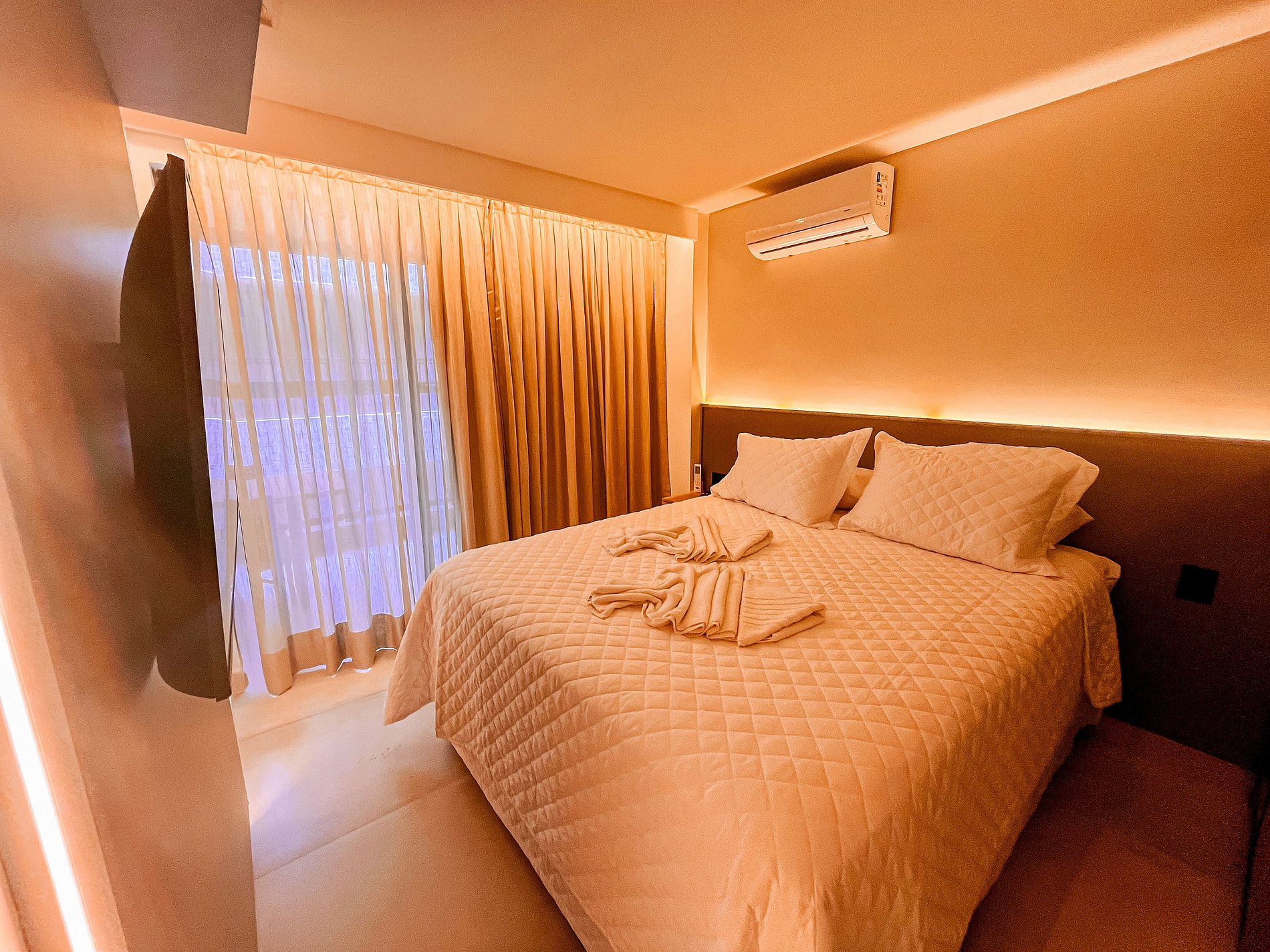 Living ofrece ropa de cama y baño, así como algunos amenities de cortesía. El flat cuenta con aire acondicionado y armarios; la sala dispone de sofá cama, televisor, mesa y sillas para las comidas. La cocina está equipada con utensilios para preparar alimentos, como sandwichera, anafe, ollas y cafetera. Además, el apartamento cuenta con secador de cabello, parlantes y Alexa. El edificio ofrece piscina, kayaks, tablas, espacio de coworking y lavandería; esta última puede ser utilizada por los huéspedes mediante el pago por el uso de la máquina. También proporcionamos cuna, sillas de playa y plancha previa solicitud y sujeto a disponibilidad.