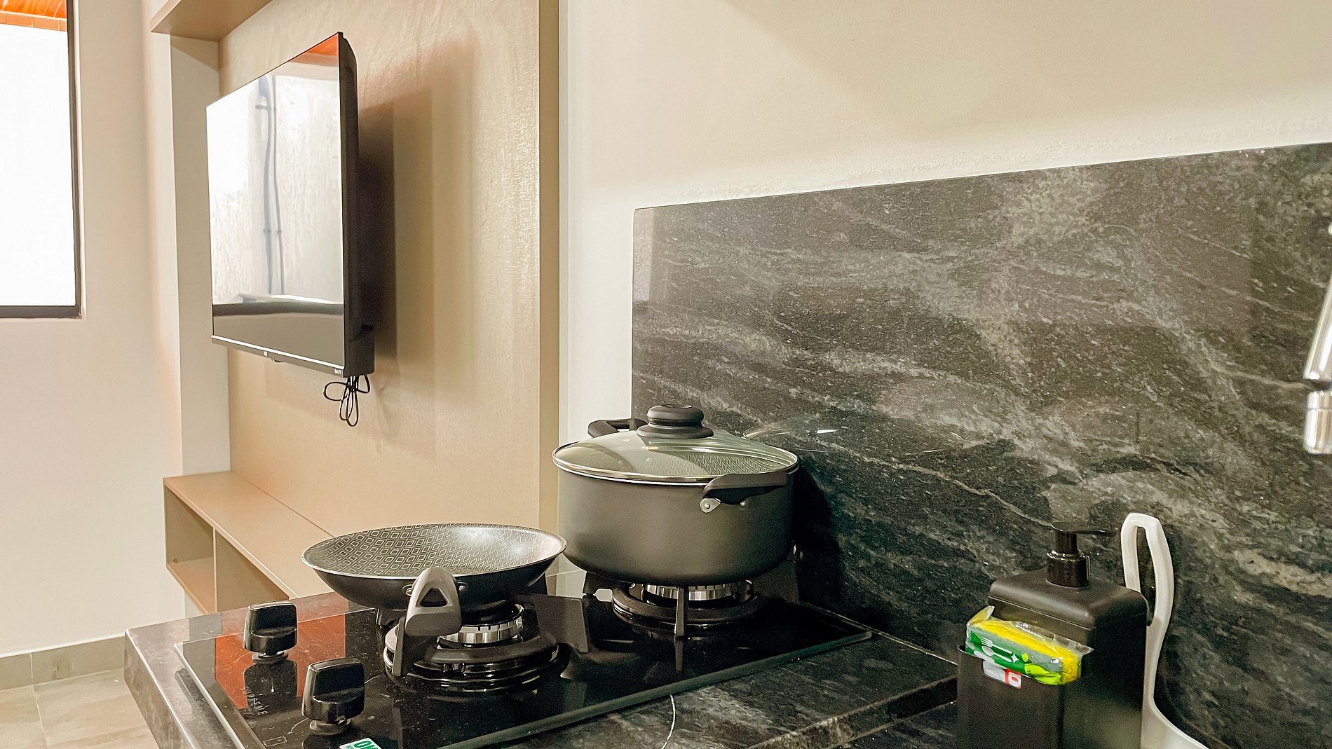 El Flat Ocean Loft #1 acomoda a 2 personas con una cama doble, aire acondicionado de 9.000 BTU y Smart TV. La cocina es compacta, equipada con cocina de inducción, microondas, cafetera, sandwichera, minibar y utensilios para comidas rápidas. El edificio cuenta con piscina en la azotea, gimnasio, lavandería y estacionamiento rotativo. Excelente condominio frente al mar, ubicado cerca de restaurantes, panaderías, gasolineras y tienditas. ¡Comodidad y practicidad para su estadía!