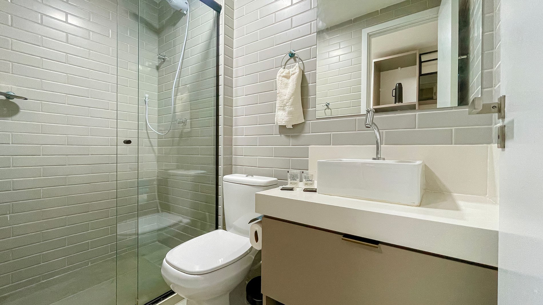 Living ofrece ropa de cama y baño, así como algunos amenities de cortesía. El flat cuenta con aire acondicionado, Smart TV, mesa y sillas para las comidas. En la cocina hay algunos utensilios para preparar comidas, como sandwichera, cocina eléctrica, ollas y cafetera. Además, el apartamento dispone de secador de pelo. El edificio ofrece piscina, kayaks y tablas, lavandería, que los huéspedes pueden utilizar mediante el pago por el uso de la máquina. También proporcionamos cunas y sillas de playa, sujetas a disponibilidad.