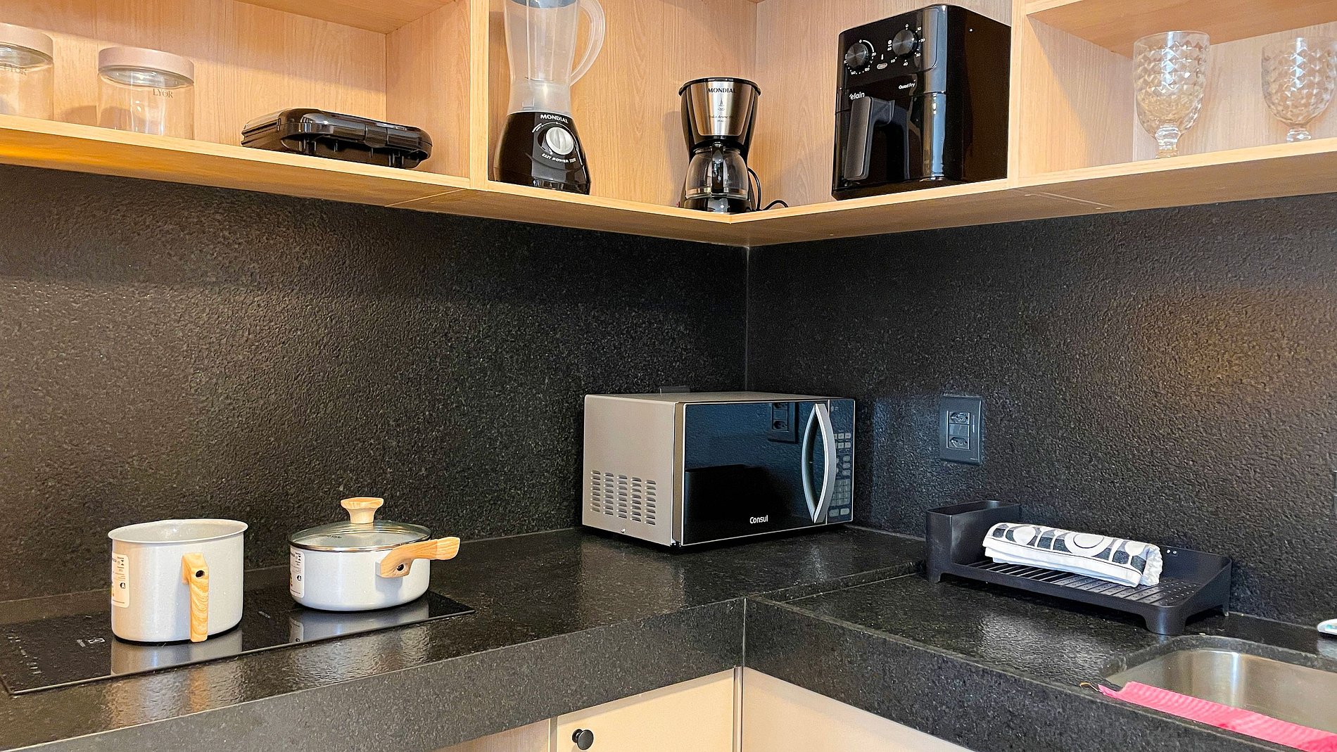 Living ofrece ropa de cama y baño, así como algunos amenities de cortesía. El flat cuenta con aire acondicionado, Smart TV, mesa y sillas para las comidas. La cocina está equipada con utensilios para la preparación de alimentos, como sandwichera, encimera, ollas y cafetera. Además, el apartamento dispone de secador de pelo y plancha.