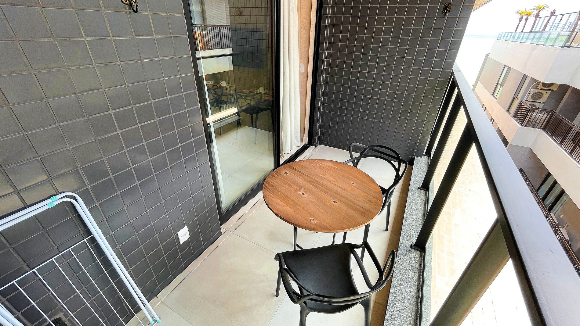 Flat con capacidad para alojar hasta 4 personas, con 1 cama queen y 2 colchones individuales. Dispone de un balcón lateral con mesa y sillas, y una cocina equipada con placa de cocción, microondas, cafetera, sandwichera, minibar, entre otros artículos. Cuenta con Smart TV, aire acondicionado y espacio para comidas. El edificio ofrece piscina en la azotea, espacio de coworking, gimnasio y lavandería. Está ubicado cerca de restaurantes, farmacias, panaderías, gasolineras y tiendas de conveniencia.