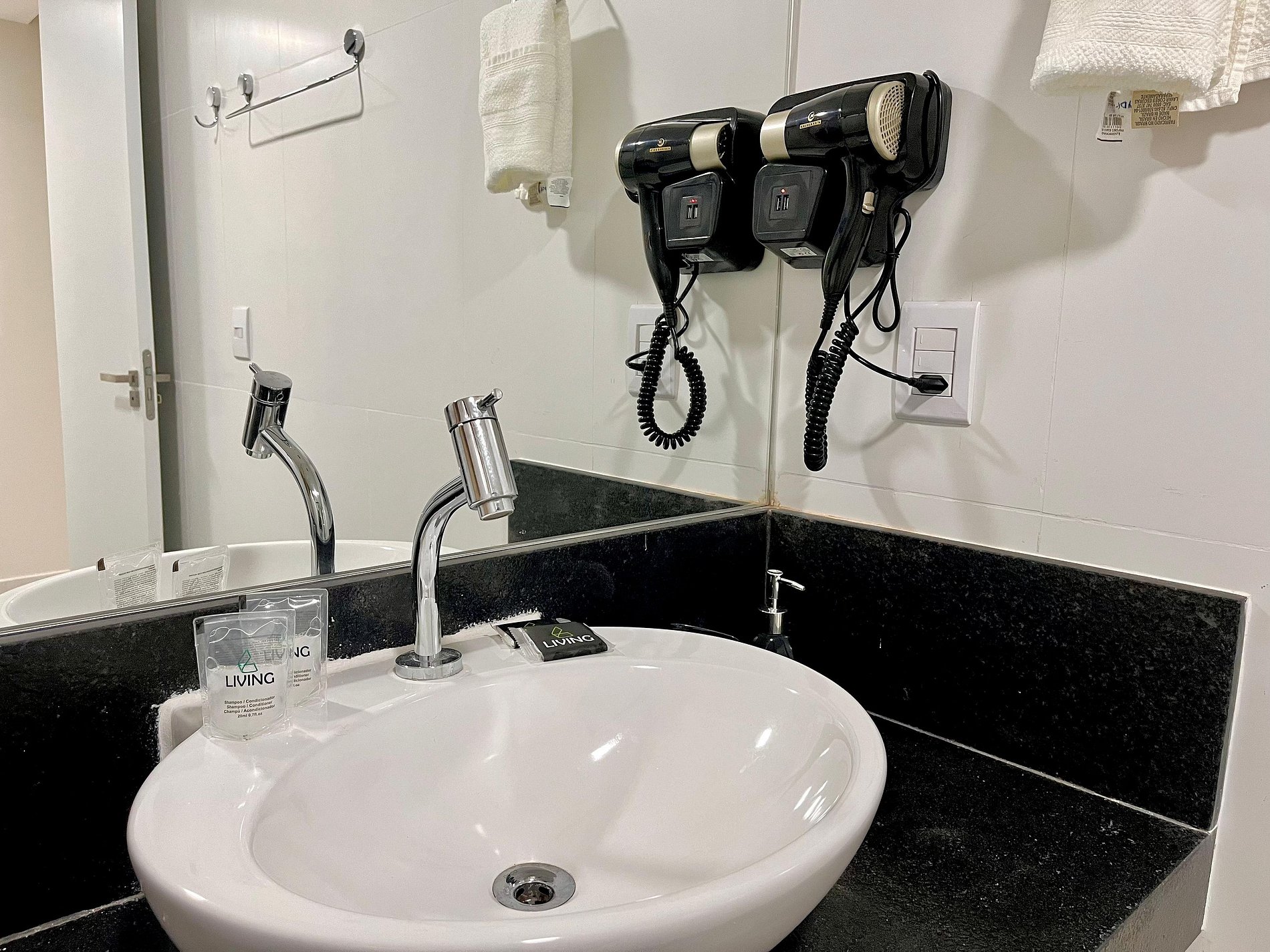 Living ofrece ropa de cama y baño, así como algunos amenities de cortesía. El flat cuenta con aire acondicionado, Smart TV, mesa y sillas para las comidas. La cocina está equipada con utensilios para la preparación de alimentos, como sandwichera, encimera, ollas y cafetera. Además, el apartamento dispone de secador de pelo y plancha.