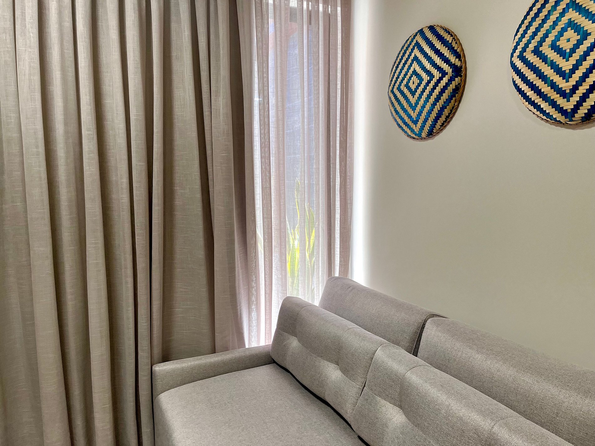 Living ofrece ropa de cama y baño, así como algunos amenities de cortesía. El flat cuenta con aire acondicionado, Smart TV, mesa y sillas para las comidas. La cocina está equipada con utensilios para la preparación de alimentos, como sandwichera, encimera, ollas y cafetera. Además, el apartamento dispone de secador de pelo y plancha.