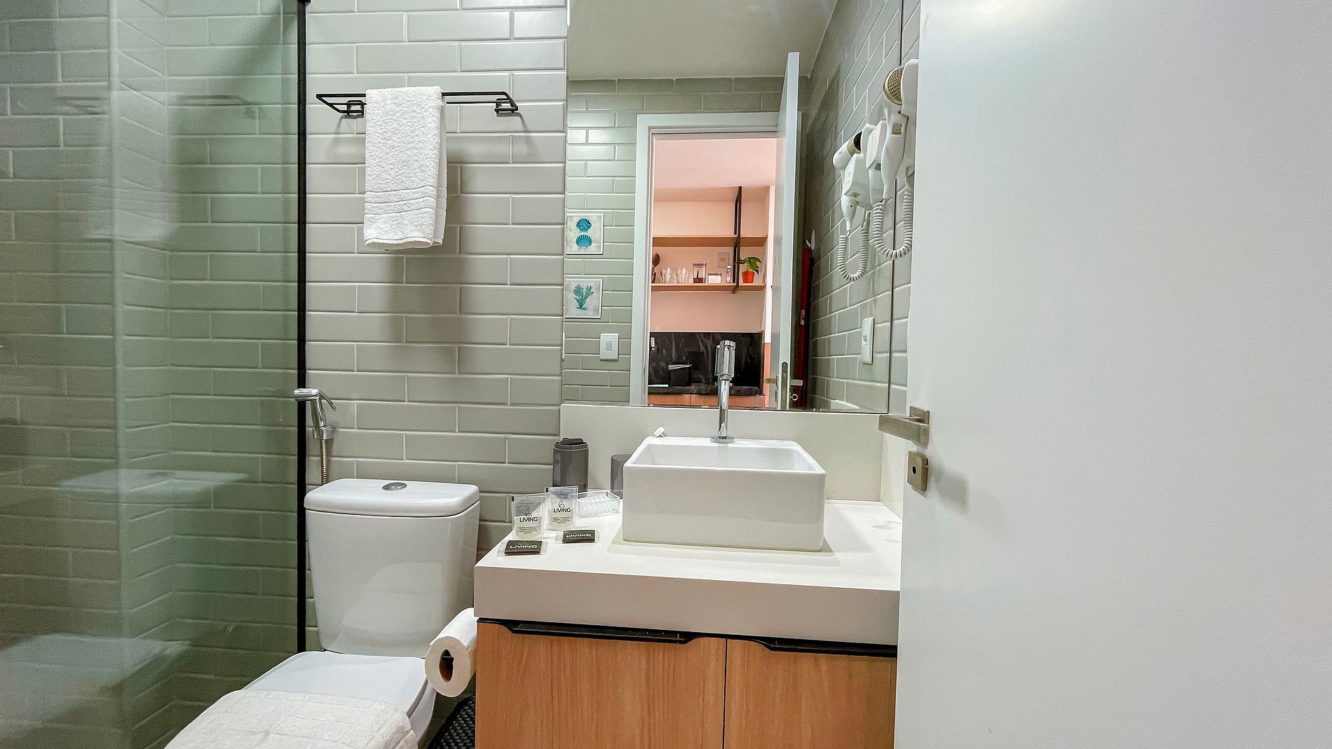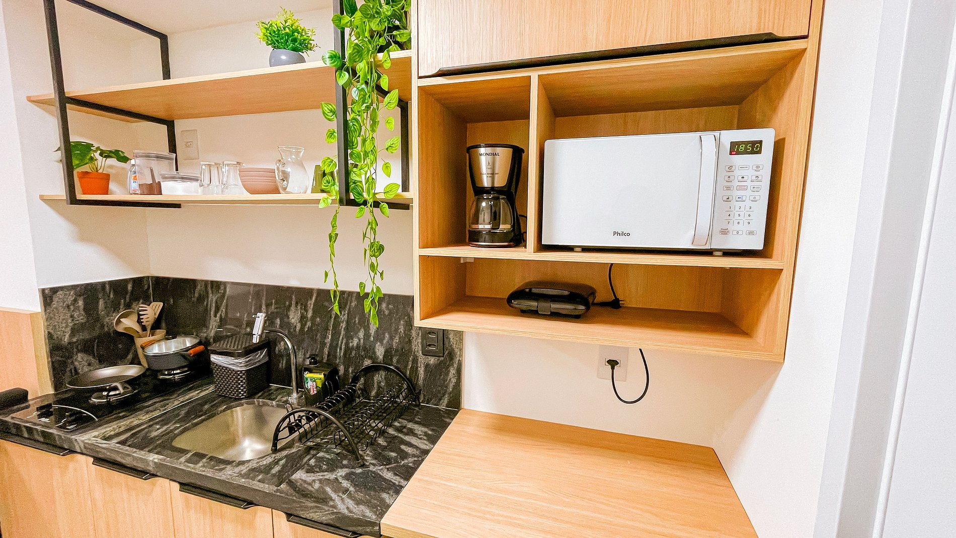A Living disponibiliza enxoval de cama e banho, além de alguns amenities como cortesia. O flat possui ar-condicionado, Smart TV, mesa e cadeiras para refeições. Na cozinha, há utensílios para o preparo de refeições, como sanduicheira, cooktop, panelas e cafeteira. Além disso, o apartamento conta com secador de cabelo. O prédio oferece piscina, lavanderia que pode ser utilizada pelos hóspedes. Fornecemos berço, rede e cadeiras de praia, SUJEITOS À DISPONIBILIDADE.