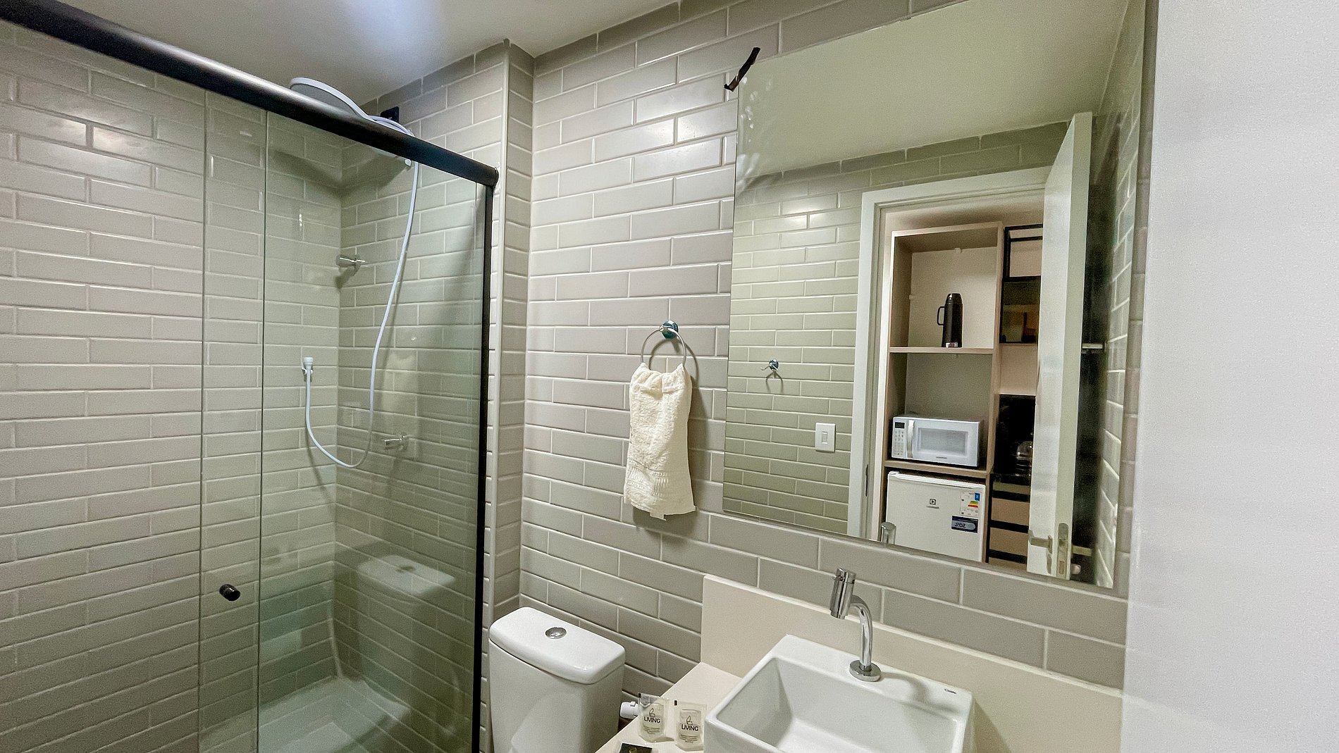 A Living disponibiliza enxoval de cama e banho, além de alguns amenities como cortesia. O flat possui ar-condicionado, Smart TV, mesa e cadeiras para refeições. Na cozinha, há utensílios para o preparo de refeições, como sanduicheira, cooktop, panelas e cafeteira. Além disso, o apartamento conta com secador de cabelo. O prédio oferece piscina, caiaques e pranchas. A lavanderia pode ser utilizada pelos hóspedes mediante pagamento pelo uso das máquinas. Fornecemos berço, rede e cadeiras de praia, sujeitos à disponibilidade.