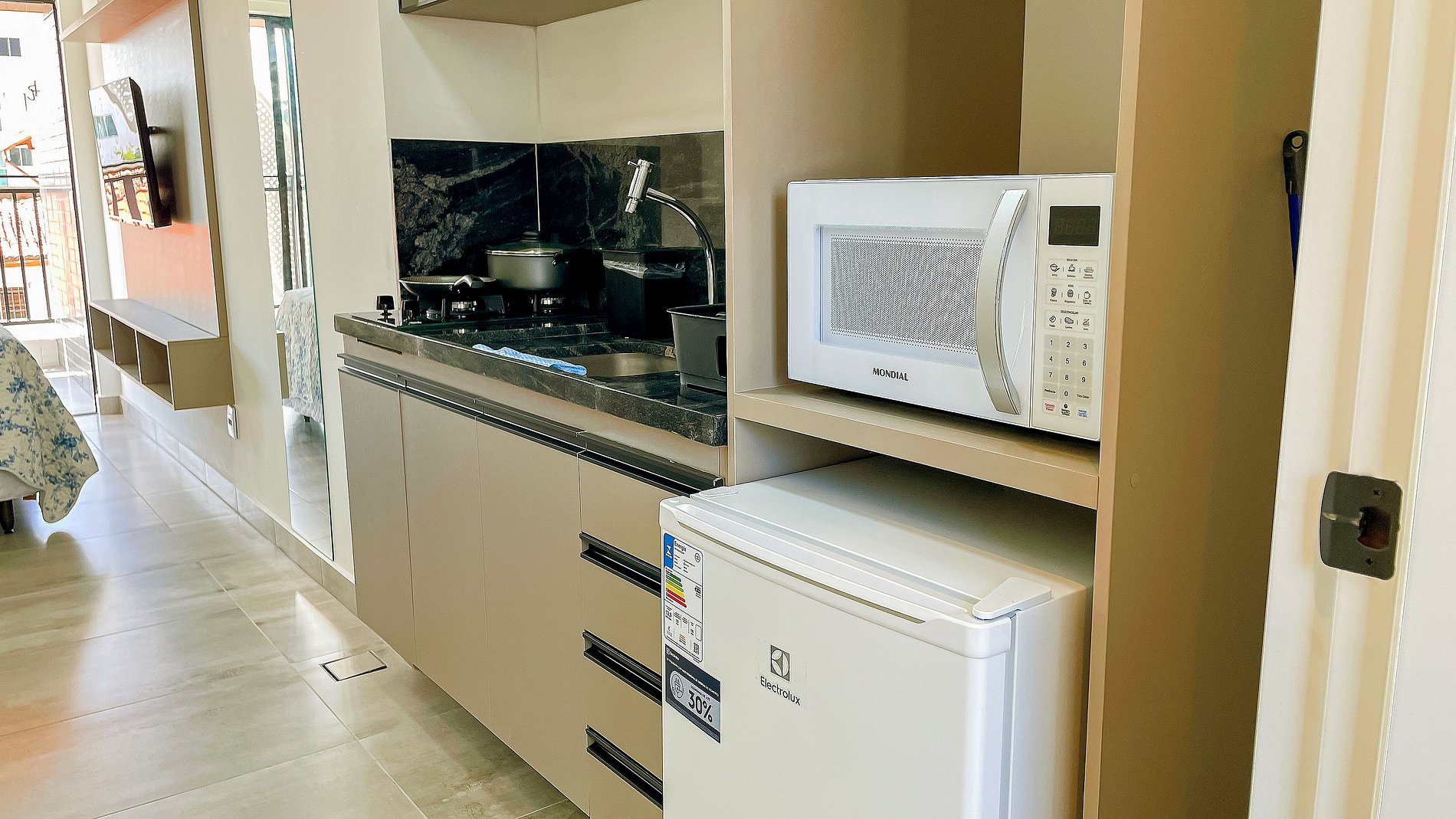 Nossas acomodações são bastante aconchegantes, proporcionando a sensação de estar em casa. Trata-se de um apartamento completo, adequado para estadias prolongadas, garantindo o máximo de conforto.