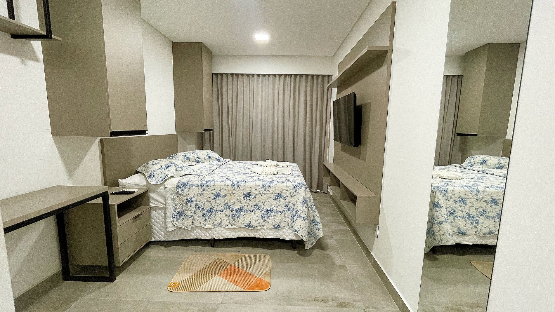 Nossas acomodações são bastante aconchegantes, proporcionando a sensação de estar em casa. Trata-se de um apartamento completo, adequado para estadias prolongadas, garantindo o máximo de conforto.