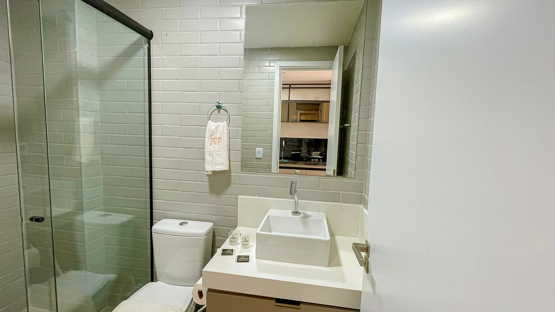 A Living disponibiliza enxoval de cama e banho, além de alguns amenities como cortesia. O flat possui ar-condicionado, Smart TV, mesa e cadeiras para refeições. Na cozinha, há utensílios para o preparo de refeições, como sanduicheira, cooktop, panelas e cafeteira. Além disso, o apartamento conta com secador de cabelo. O prédio oferece piscina, caiaques e pranchas. A lavanderia pode ser utilizada pelos hóspedes mediante pagamento pelo uso das máquinas. Fornecemos berço, rede e cadeiras de praia, sujeitos à disponibilidade.