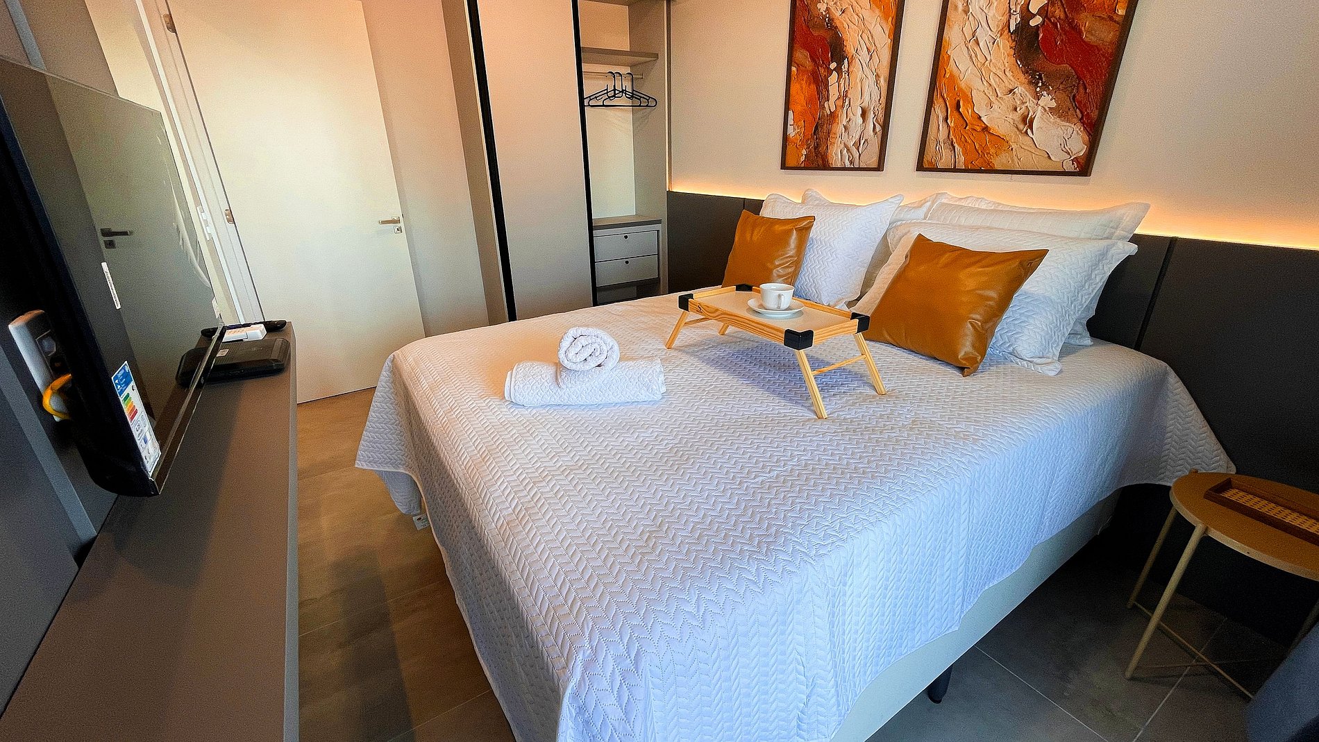A Living disponibiliza enxoval de cama e banho, além de alguns amenities como cortesia. O flat possui ar-condicionado, Smart TV, mesa e cadeiras para refeições. Na cozinha, há utensílios para o preparo de refeições, como sanduicheira, cooktop, panelas. O prédio oferece piscina, caiaques e pranchas. A lavanderia pode ser utilizada pelos hóspedes mediante pagamento pelo uso das máquinas. Fornecemos berço, rede e cadeiras de praia, sujeitos à disponibilidade.