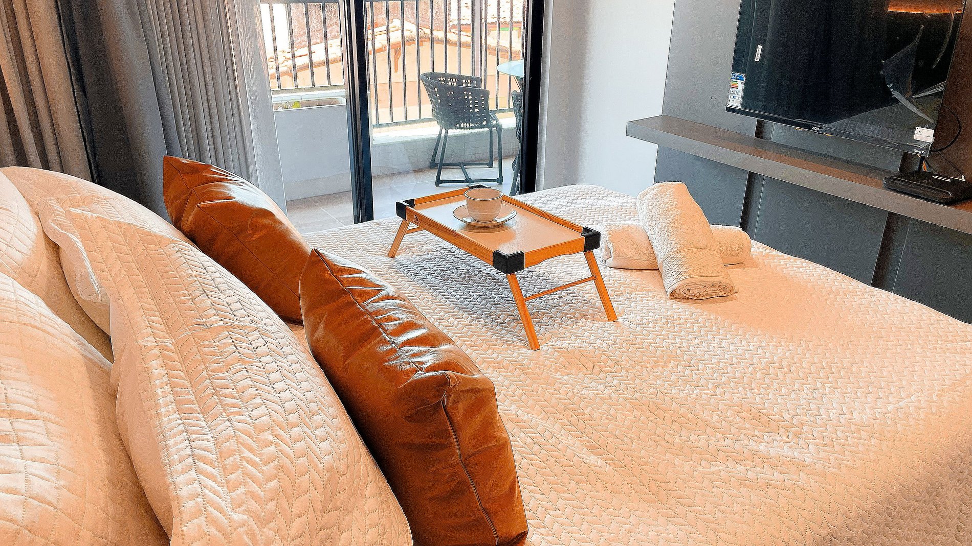 Trocas de enxoval de cama e banho, bem como solicitações de itens extras, estão sujeitas à disponibilidade e à cobrança de taxa adicional.