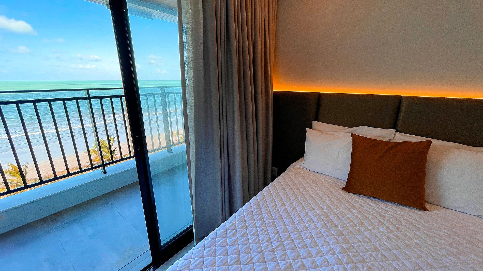 Nosso Apto Luxo Frente Mar #2 com garagem fixa e capacidade para acomodar até 04 pessoas com 01 cama queen e 01 cama de casal,ar condicionado e Smart TV em cada ambiente. A cozinha compacta com cooktop, micro-ondas, cafeteira, sanduicheira, geladeira e utensílios para refeições rápidas. O prédio conta com piscina na cobertura, academia, lavanderia. Condomínio excelente frente para o mar, locazilação perto de restaurantes, padarias, postos e mercadinhos. Conforto e praticidade para sua estadia!