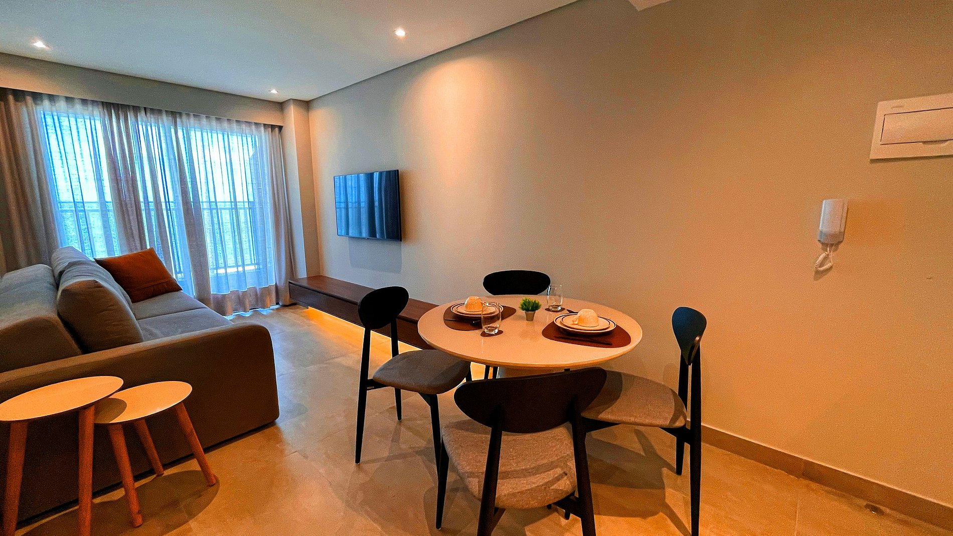Nossas acomodações são bastante aconchegantes, proporcionando a sensação de estar em casa. Trata-se de um apartamento completo, adequado para estadias prolongadas, garantindo o máximo de conforto.