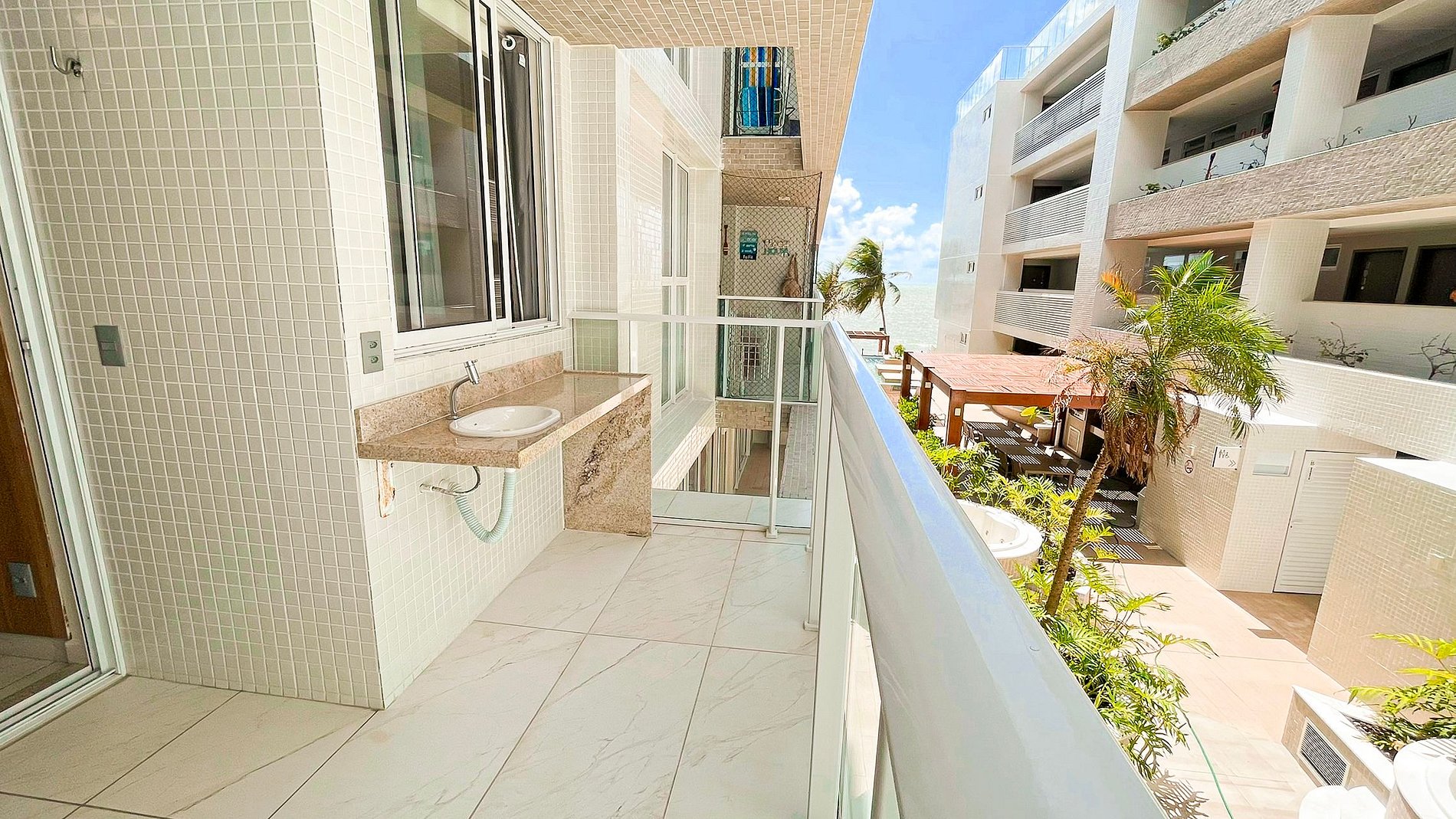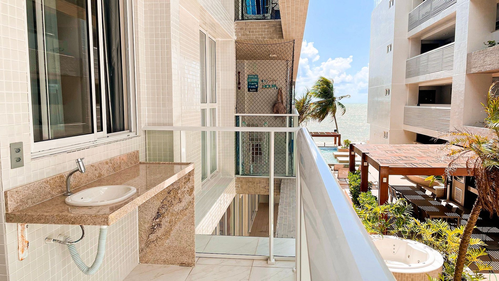 Conta com uma piscina aquecida com vista deslumbrante para o mar, academia completa para quem deseja manter a rotina em dia, além de brinquedoteca para as crianças se divertirem. O condomínio conta com um mini mercado 24 horas e lavanderia OMO à disposição dos hóspedes, proporcionando ainda mais praticidade durante a estada.