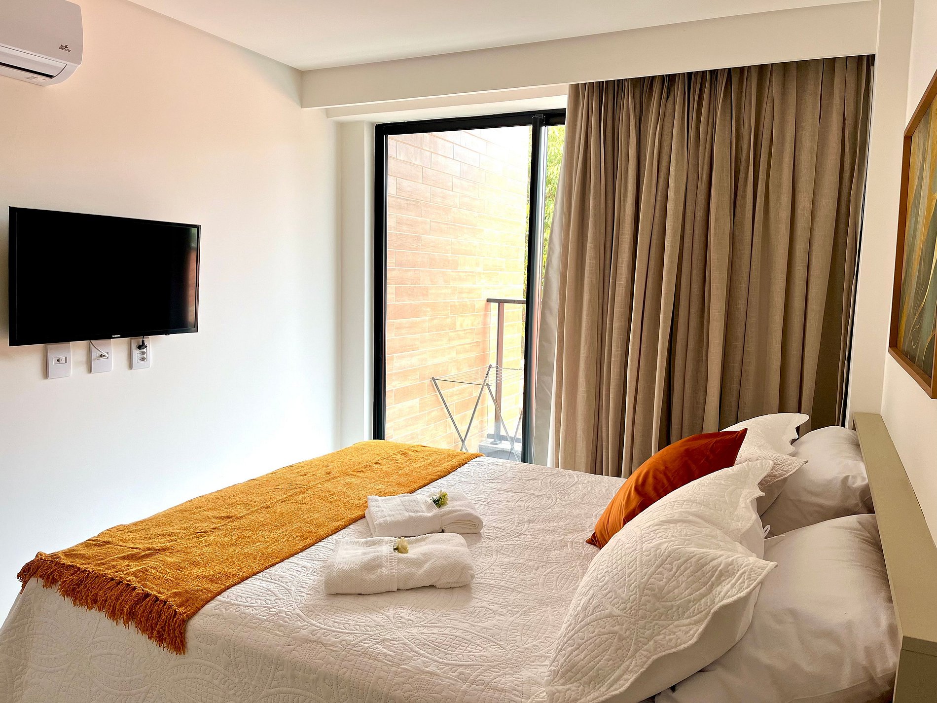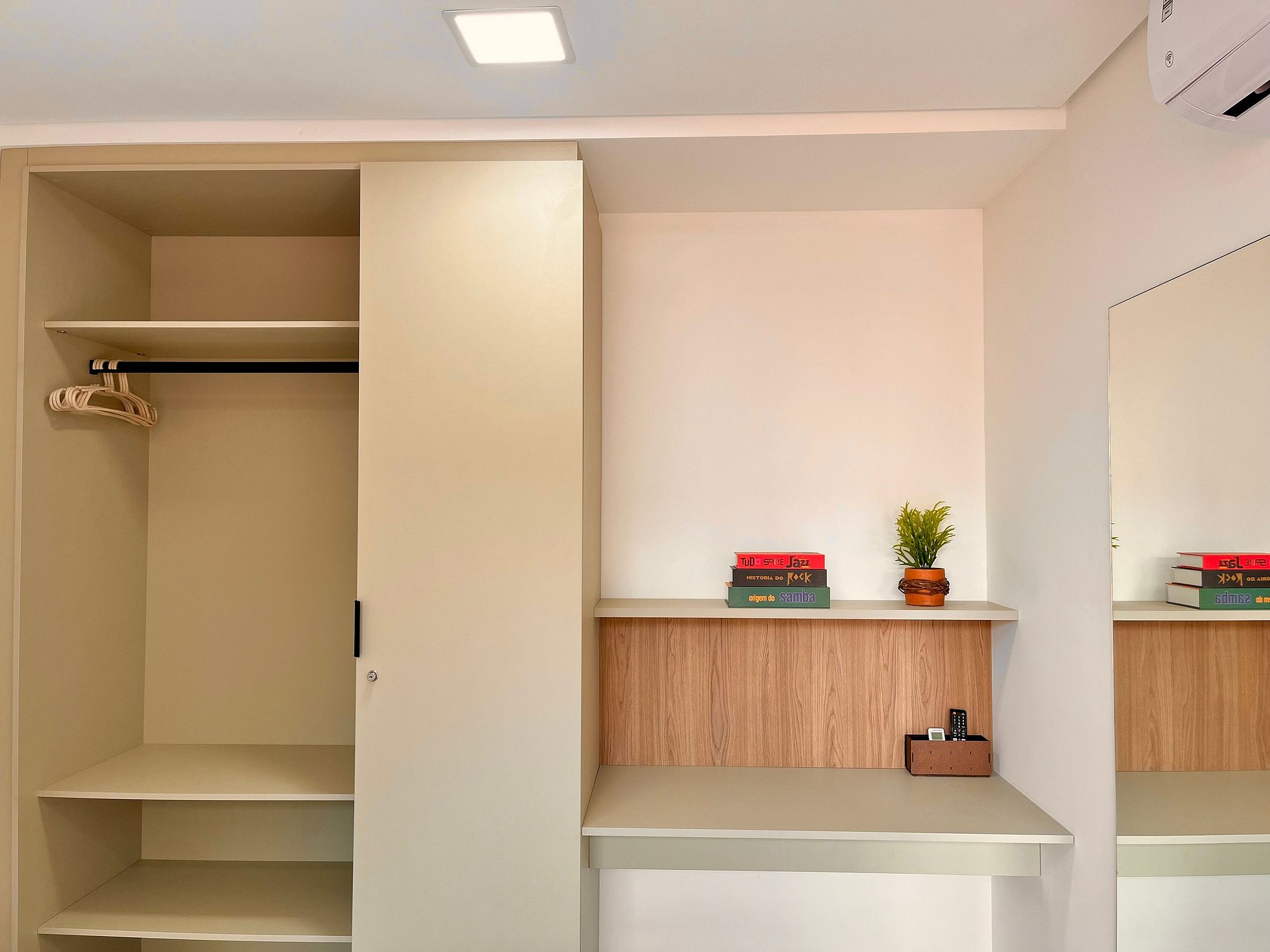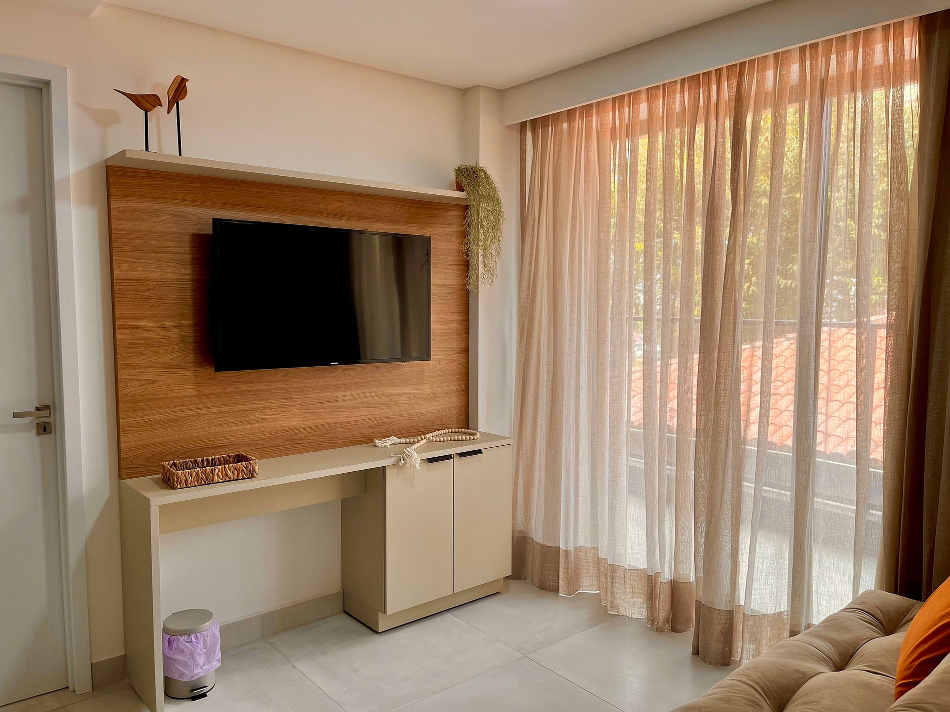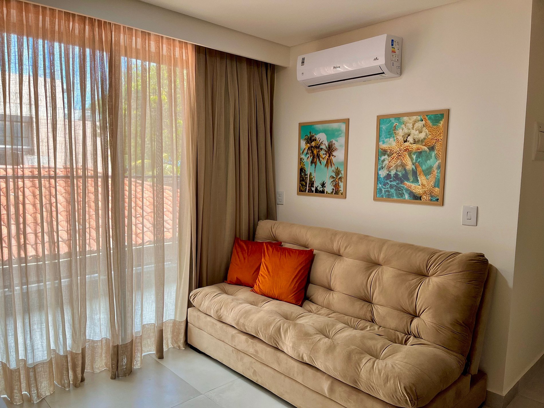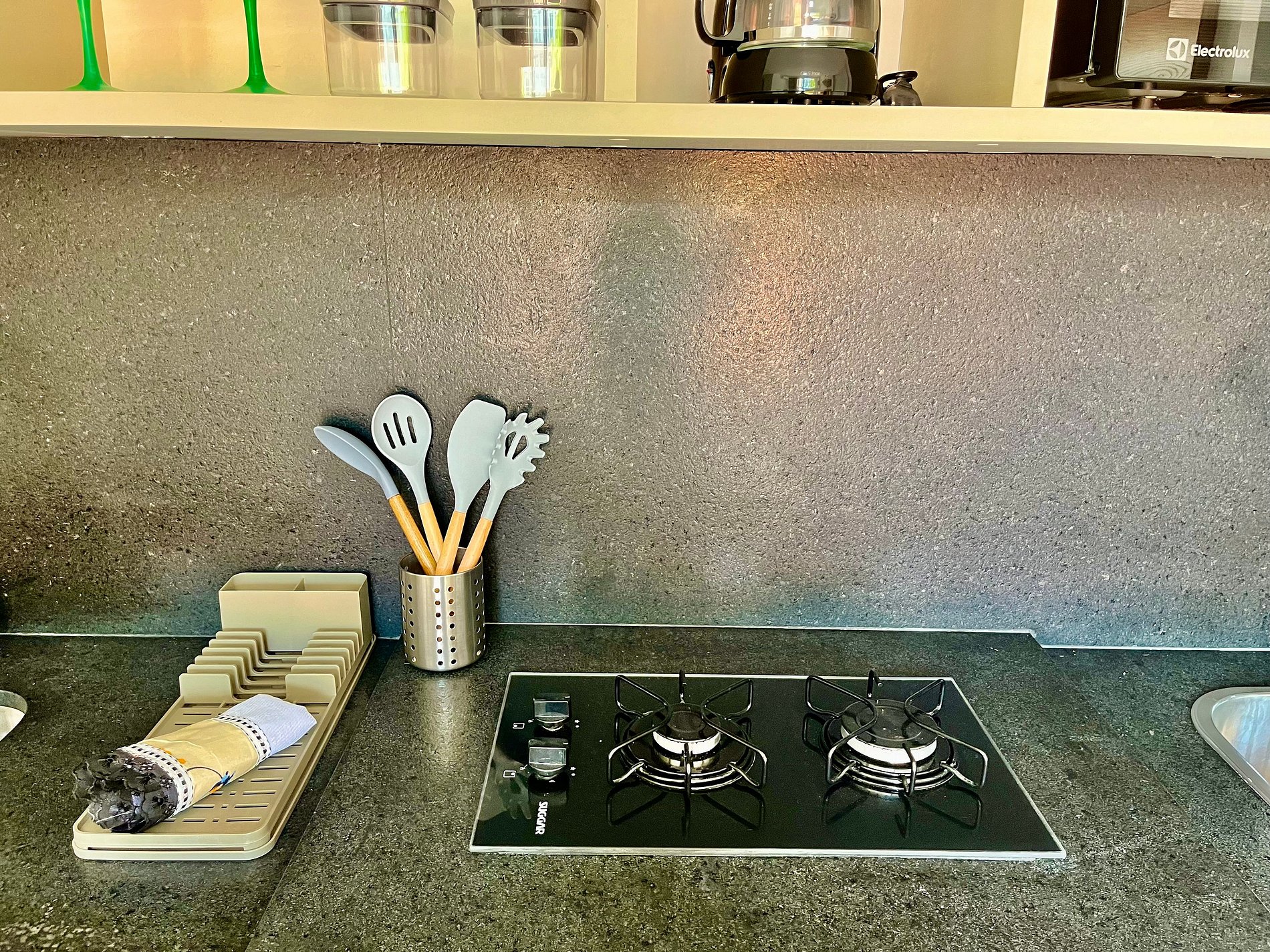 A Living disponibiliza enxoval de cama e banho, bem como alguns amenities como cortesia. O flat possui ar-condicionado, Smart Tv, mesa e cadeiras para refeições. Na cozinha, encontram-se alguns utensílios para preparo de refeições, como sanduicheira, cooktop, panelas e cafeteira. Além disso, o apartamento conta com secador de cabelo. O prédio oferece piscina, caiaques e pranchas, coworking e lavanderia, que pode ser utilizada pelos hóspedes mediante pagamento pelo uso da máquina. Fornecemos berço e cadeiras de praia, também sujeitos à disponibilidade.