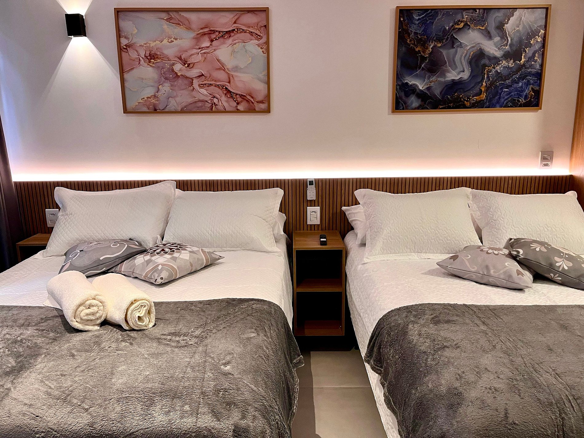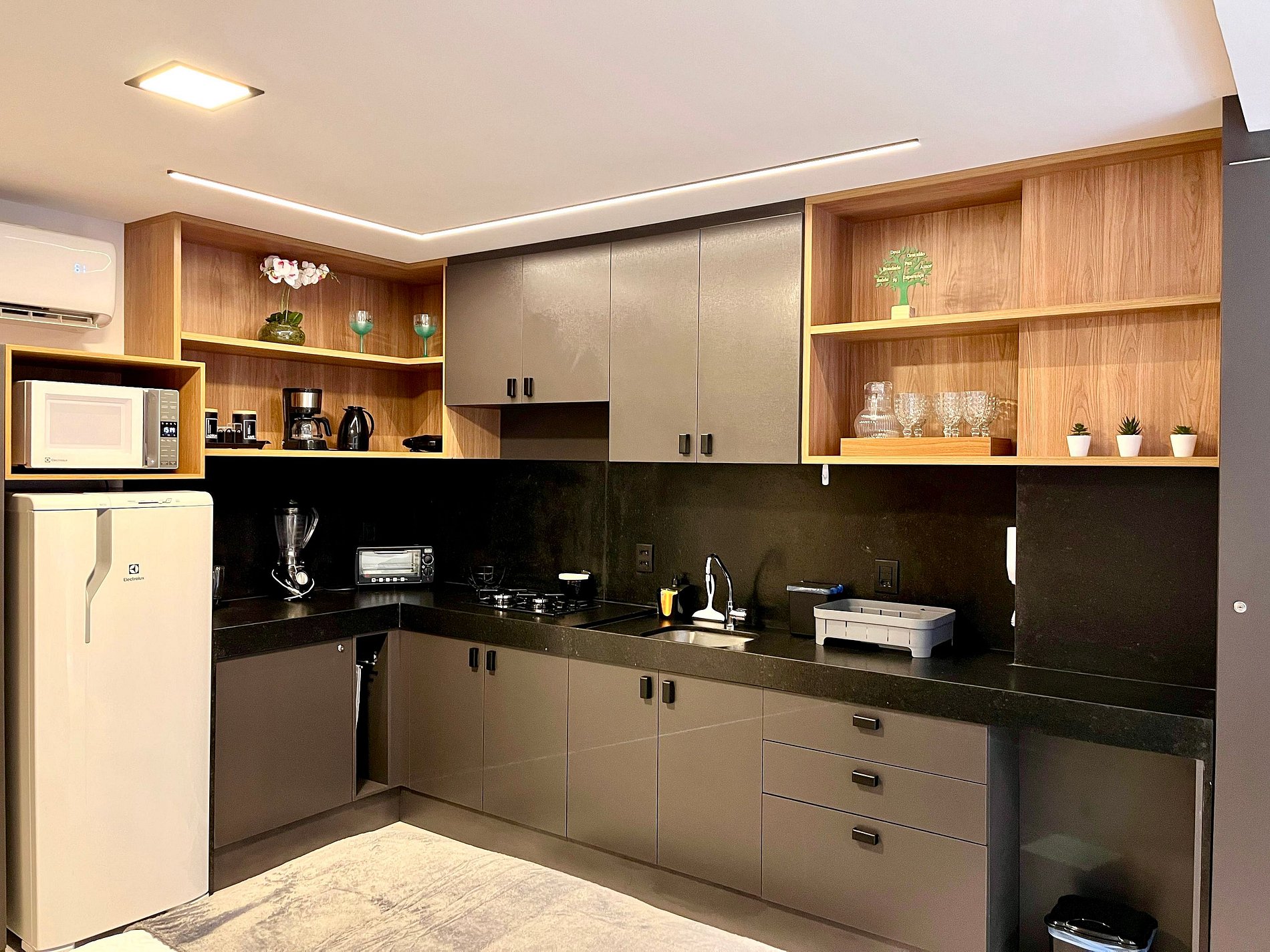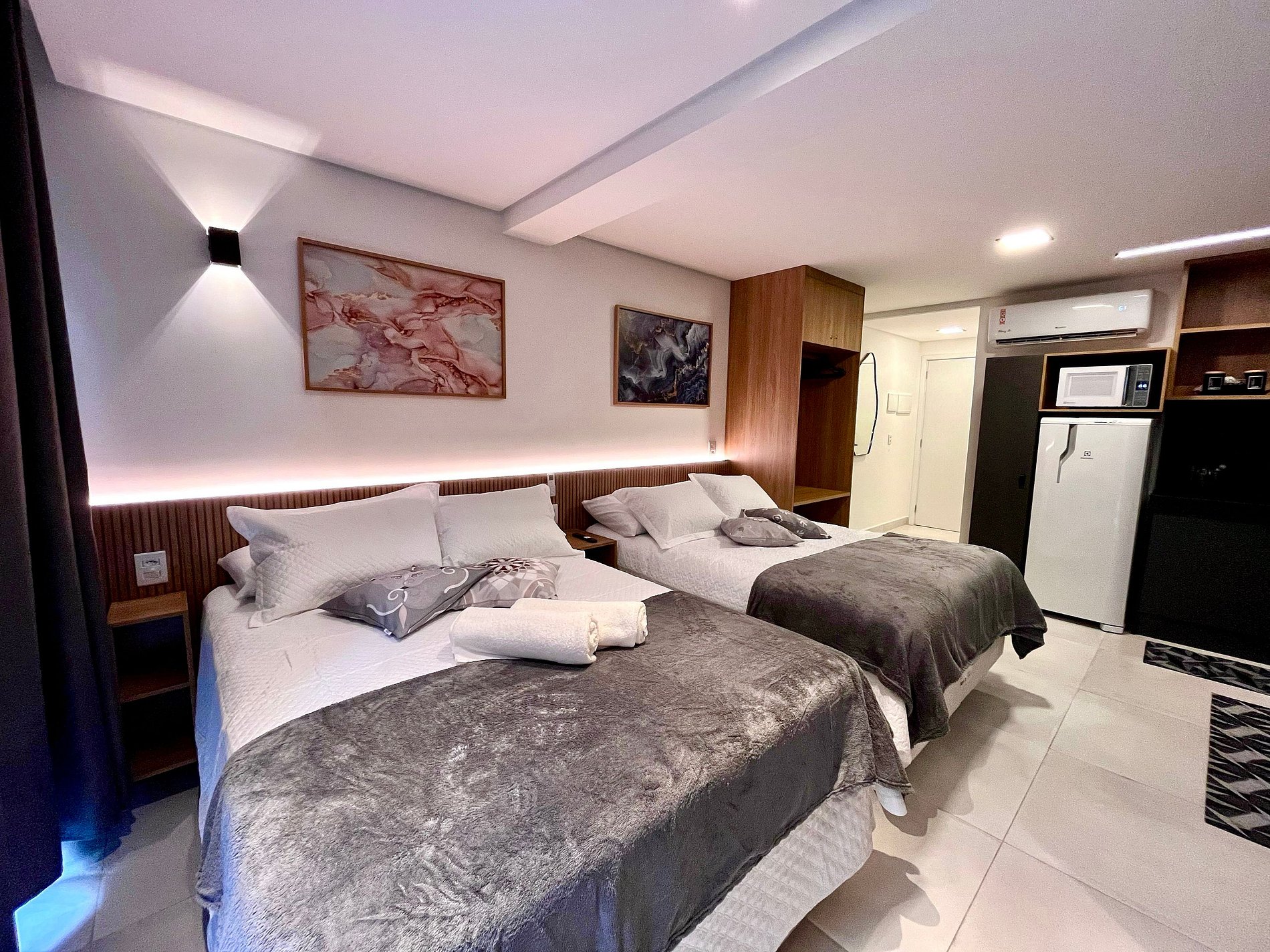 Flat com 37m², capacidade para acomodar até 04 pessoas, contando com duas camas casais. Possui uma área externa com mesa e cadeiras e chuveiro externo, cozinha equipada com cooktop, micro-ondas, cafeteira, sanduicheira, frigobar entre outros itens.Conta com Smart TV, ar condicionado, espaço para trabalho. O prédio conta com piscina na cobertura, coworking, academia e lavanderia. Fica próximo a restaurantes, farmácias, padarias, posto de gasolina e conveniências.