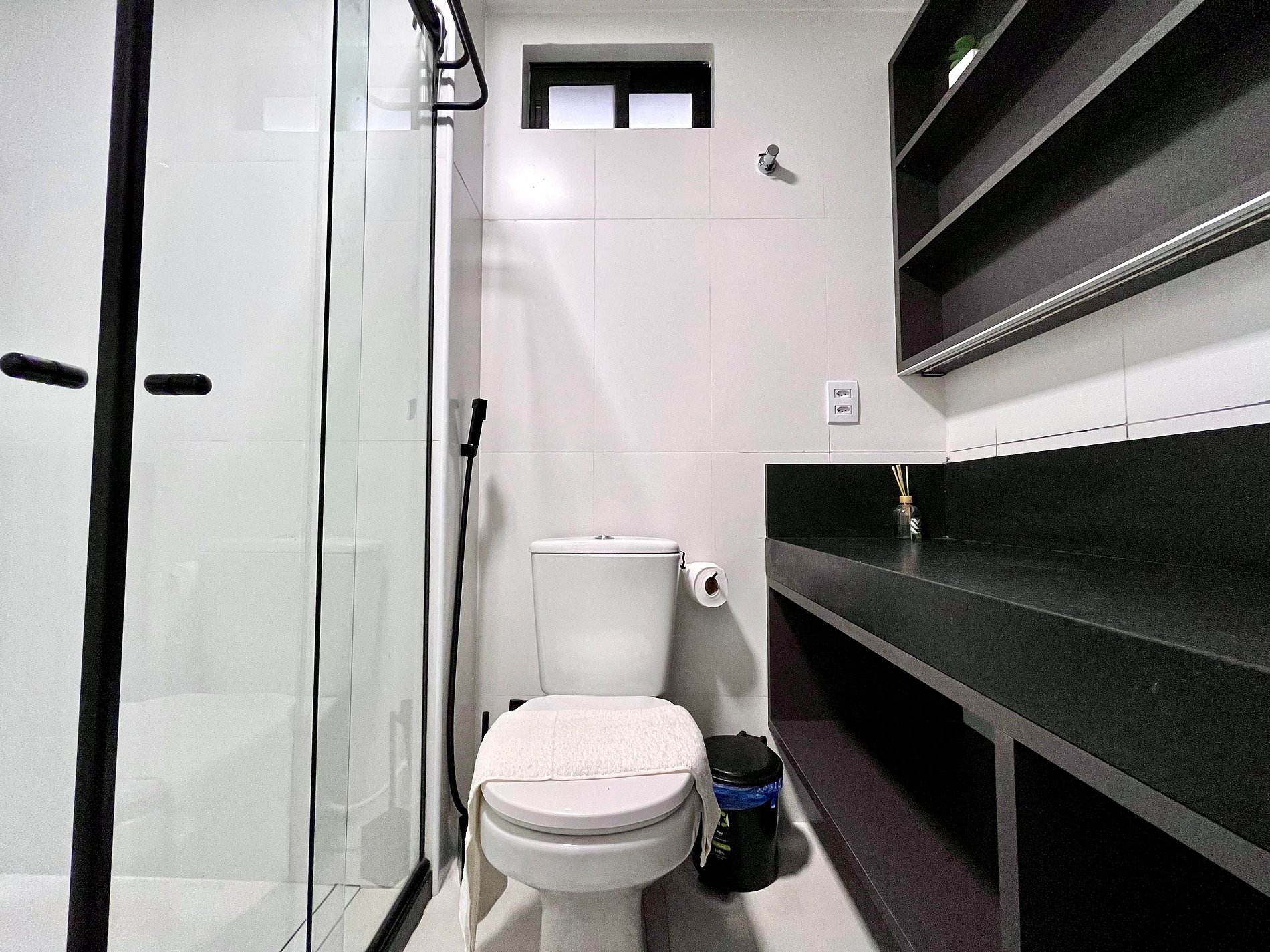 Flat com 37m², capacidade para acomodar até 04 pessoas, contando com duas camas casais. Possui uma área externa com mesa e cadeiras e chuveiro externo, cozinha equipada com cooktop, micro-ondas, cafeteira, sanduicheira, frigobar entre outros itens.Conta com Smart TV, ar condicionado, espaço para trabalho. O prédio conta com piscina na cobertura, coworking, academia e lavanderia. Fica próximo a restaurantes, farmácias, padarias, posto de gasolina e conveniências.