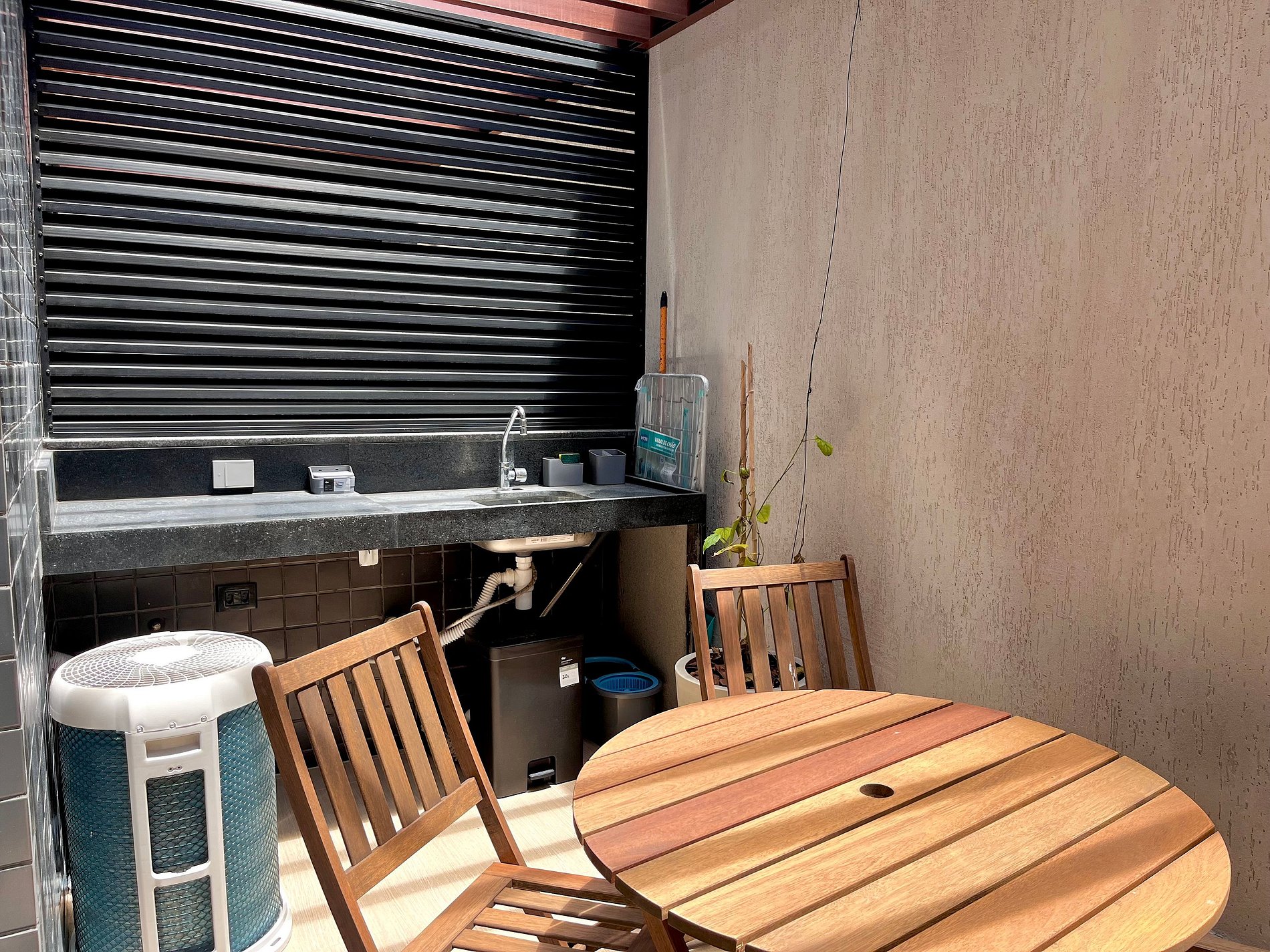 Flat com 37m², capacidade para acomodar até 04 pessoas, contando com uma cama queen e um sofá cama casal. Possui uma área externa com mesa e cadeiras e chuveiro externo, cozinha equipada com cooktop, micro-ondas, cafeteira, sanduicheira, frigobar e airfryer entre outros itens.Conta com Smart TV, ar condicionado, espaço para refeições. O prédio conta com piscina na cobertura, coworking, academia e lavanderia. Fica próximo a restaurantes, farmácias, padarias, posto de gasolina e conveniências.
