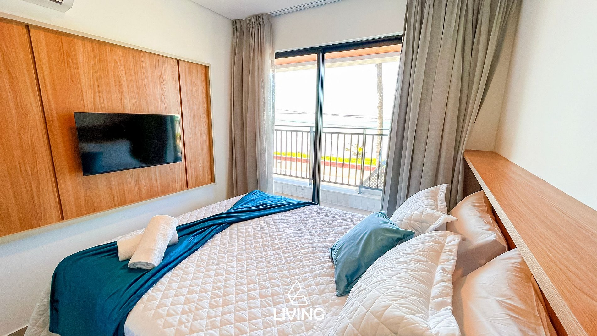 Nosso Apto Luxo Frente Mar #1 com garagem fixa e capacidade para acomodar até 05 pessoas com 2 camas queen, sofá-cama na sala, ar condicionado e Smart TV em cada ambiente. A cozinha compacta com cooktop, micro-ondas, cafeteira, sanduicheira, frigobar e utensílios para refeições rápidas. O prédio conta com piscina na cobertura, academia, lavanderia. Condomínio excelente frente para o mar, locazilação perto de restaurantes, padarias, postos e mercadinhos. Conforto e praticidade para sua estadia!