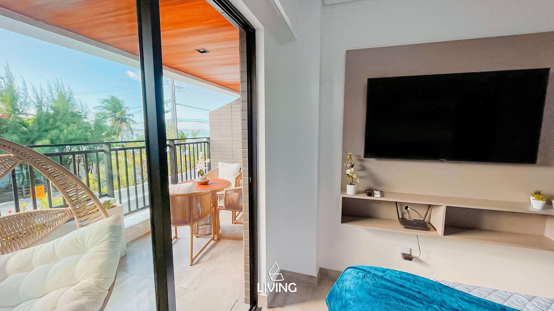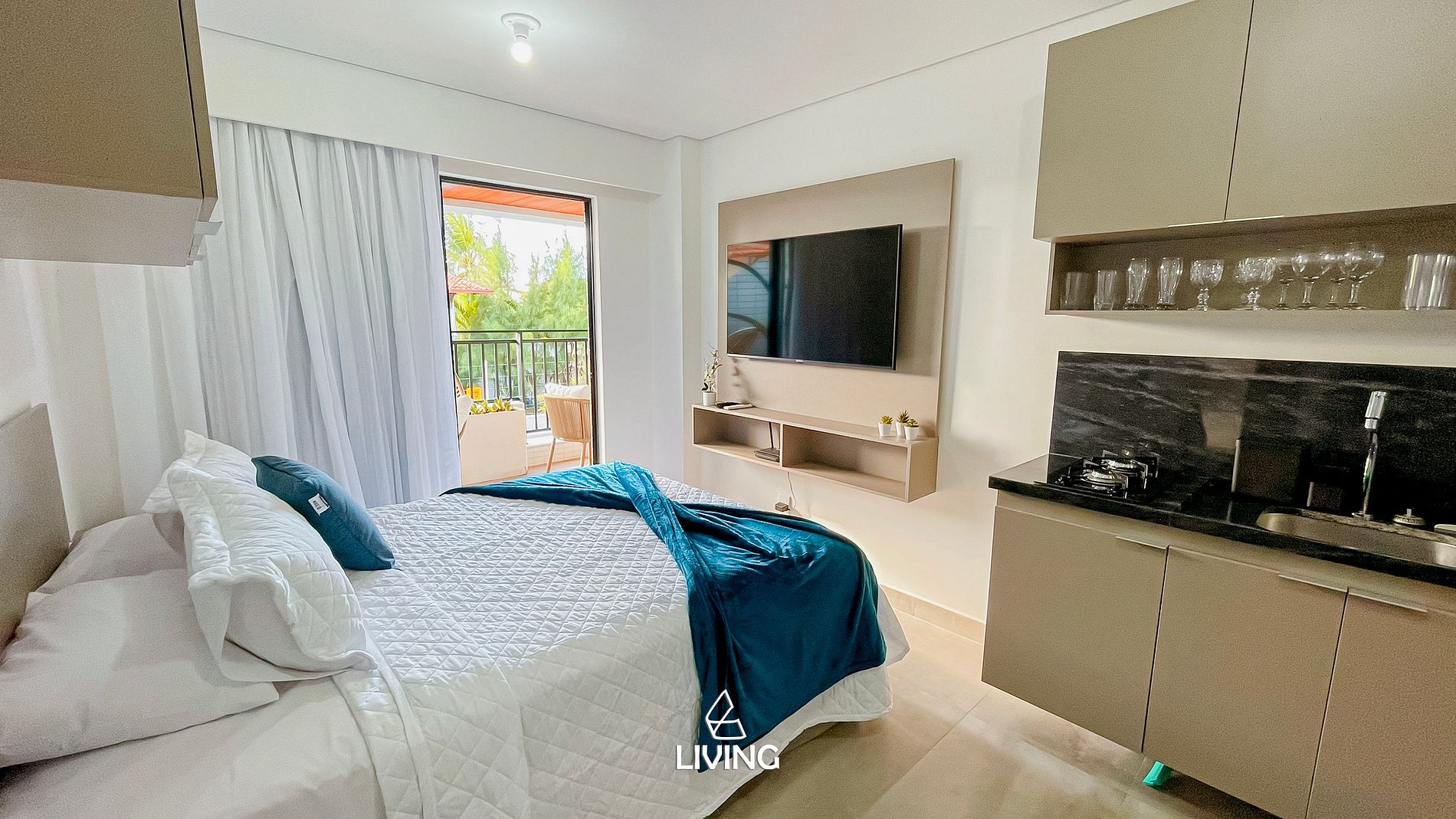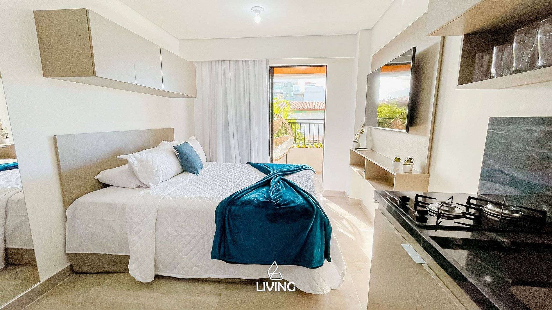 A Living disponibiliza enxoval de cama e banho, além de alguns amenities como cortesia. O flat possui ar-condicionado, Smart TV, mesa e cadeiras para refeições. Na cozinha, há utensílios para o preparo de refeições, como sanduicheira, cooktop, panelas e cafeteira. Além disso, o apartamento conta com secador de cabelo. O prédio oferece piscina, caiaques e pranchas. A lavanderia pode ser utilizada pelos hóspedes mediante pagamento pelo uso das máquinas. Fornecemos berço, rede e cadeiras de praia, sujeitos à disponibilidade.