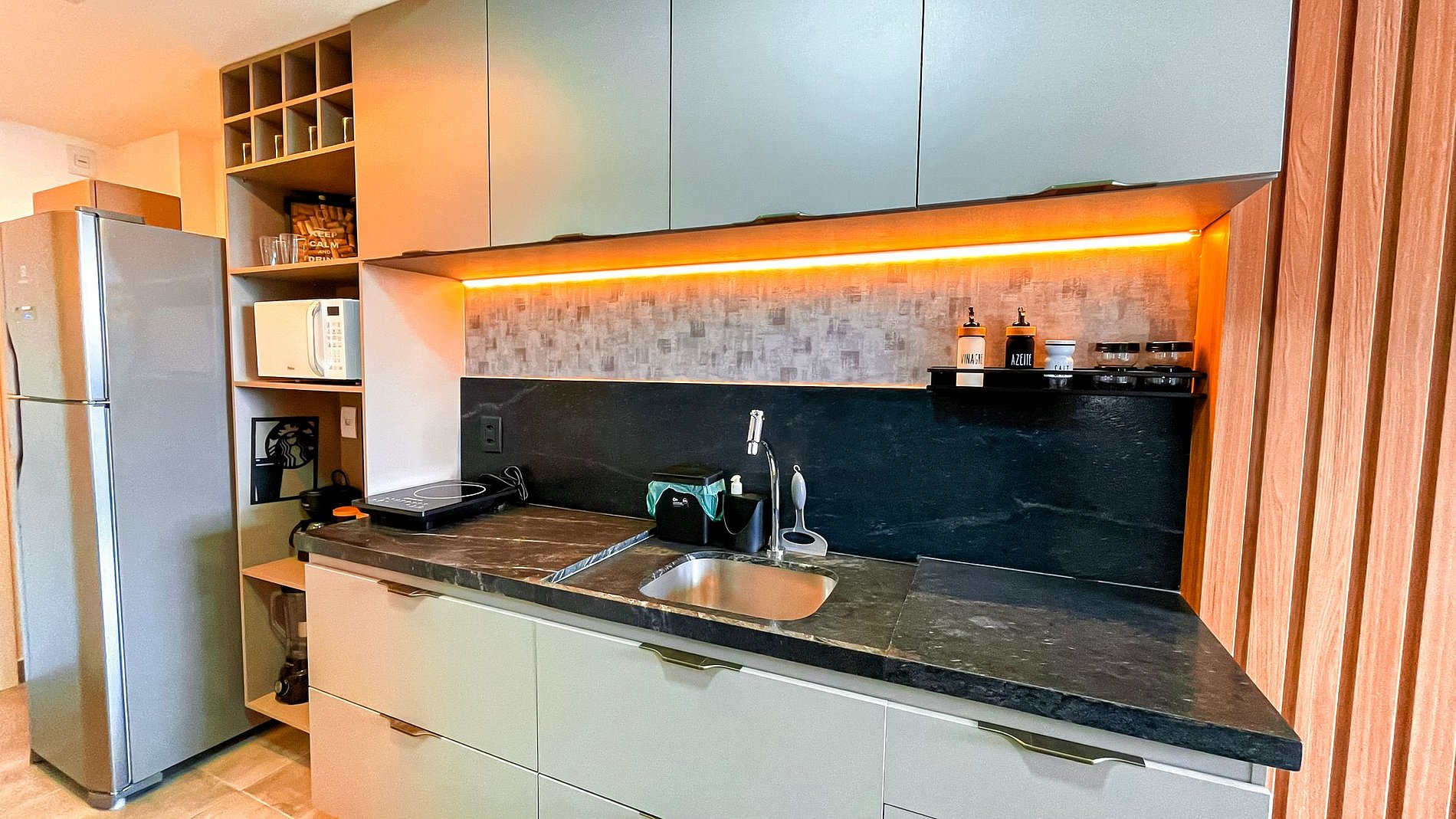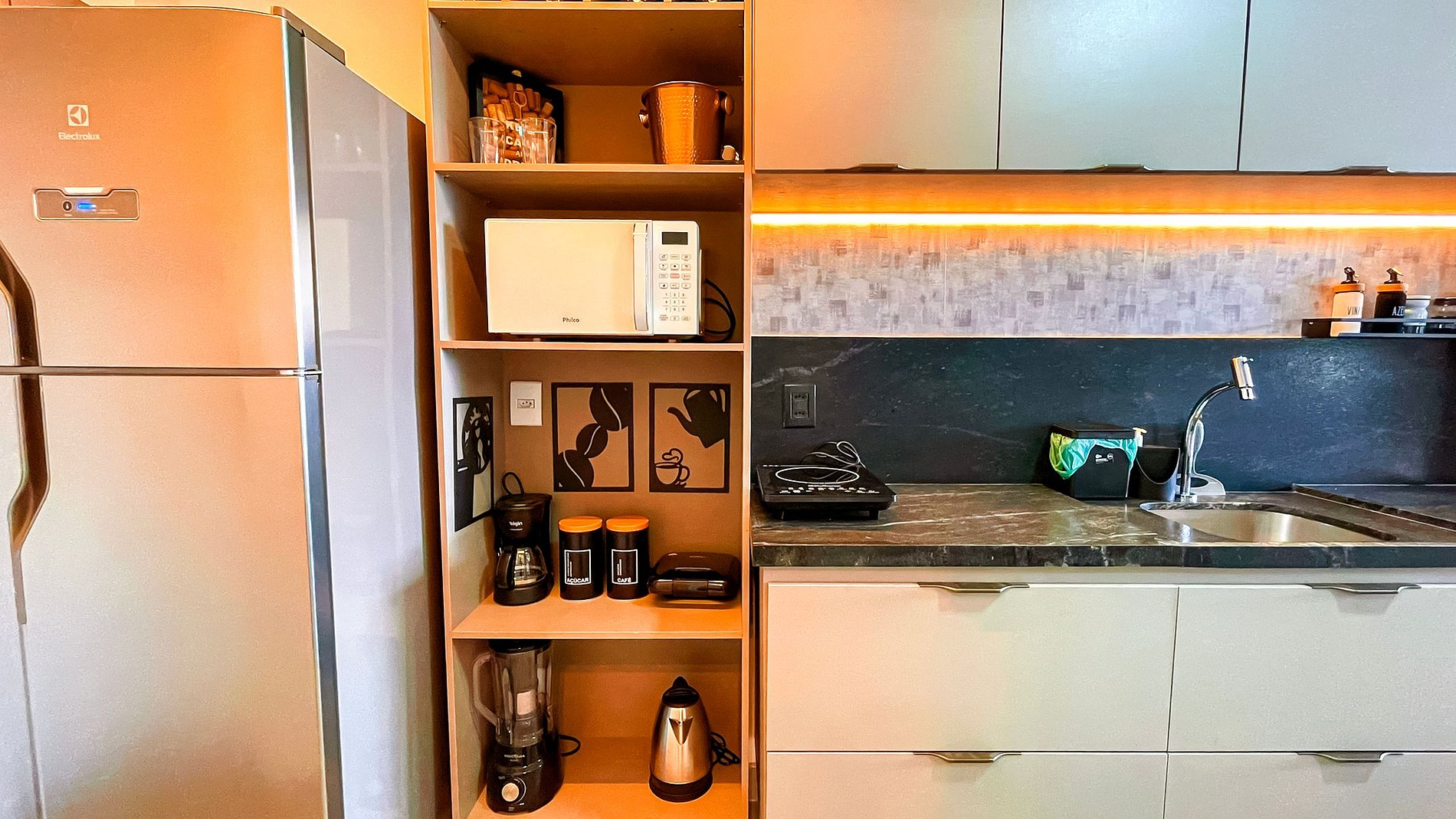A Living disponibiliza enxoval de cama e banho, além de alguns amenities como cortesia. O flat possui ar-condicionado, Smart TV, mesa e cadeiras para refeições. Na cozinha, há utensílios para o preparo de refeições, como sanduicheira, cooktop, panelas e cafeteira. Além disso, o apartamento conta com secador de cabelo. O prédio oferece piscina, caiaques e pranchas. A lavanderia pode ser utilizada pelos hóspedes mediante pagamento pelo uso das máquinas. Fornecemos berço, rede e cadeiras de praia, sujeitos à disponibilidade.