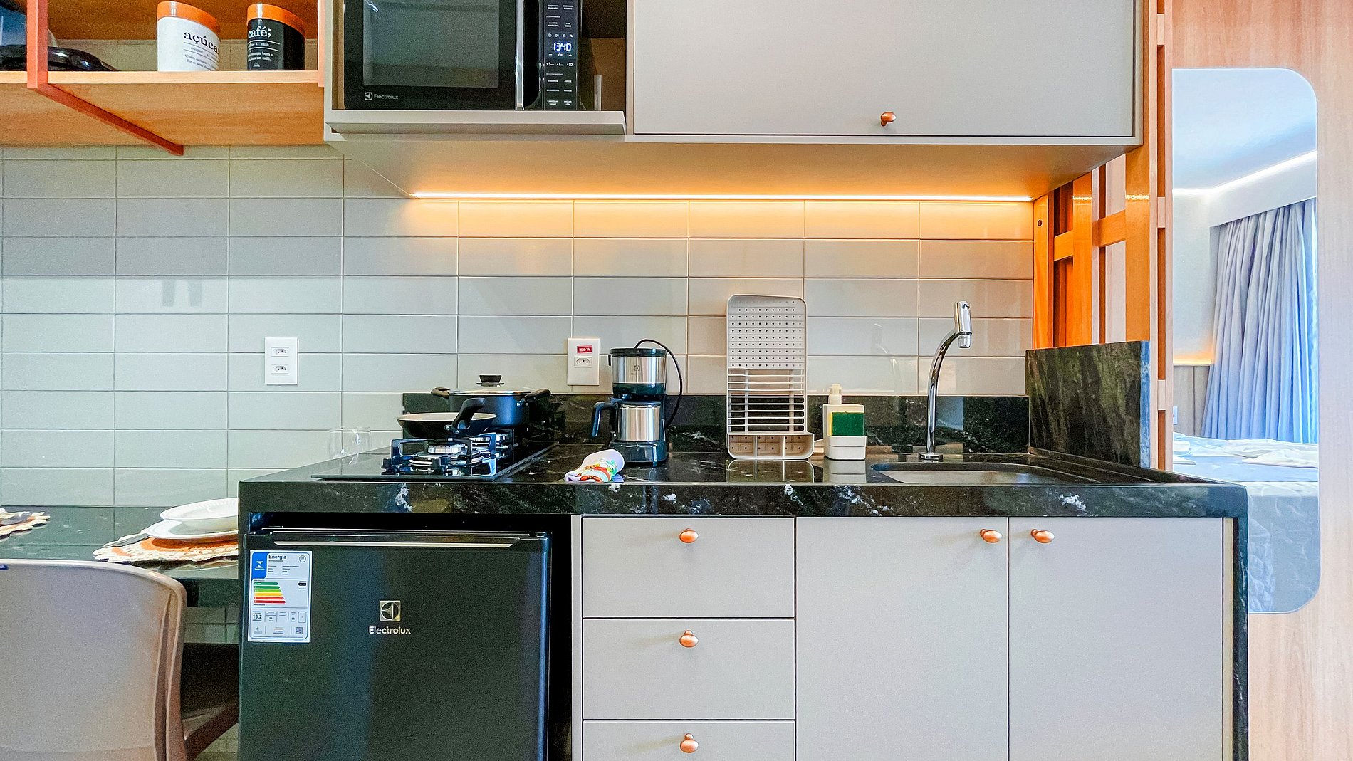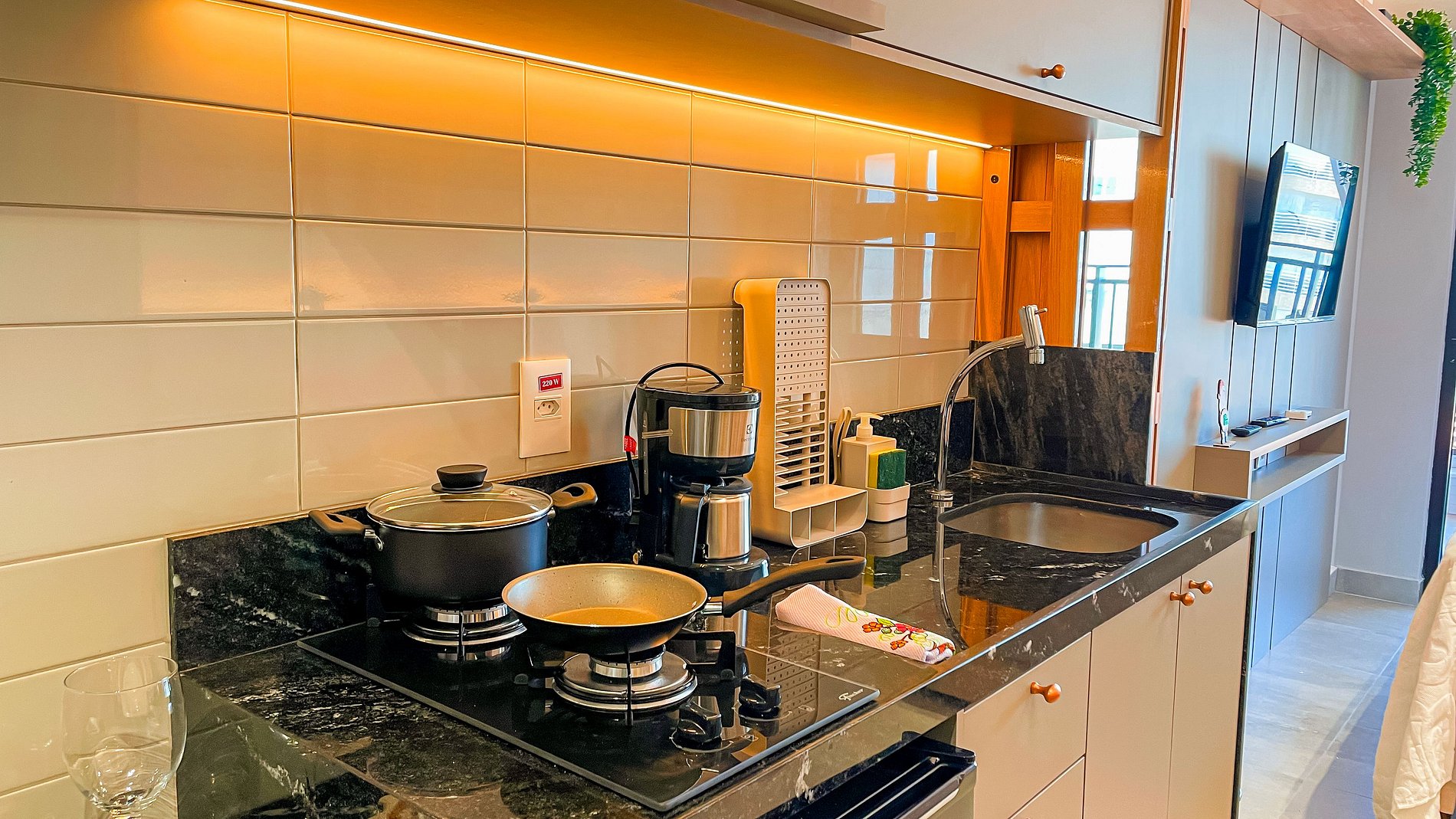 Nossas acomodações são bastante aconchegantes, proporcionando a sensação de estar em casa. Trata-se de um apartamento completo, adequado para estadias prolongadas, garantindo o máximo de conforto.