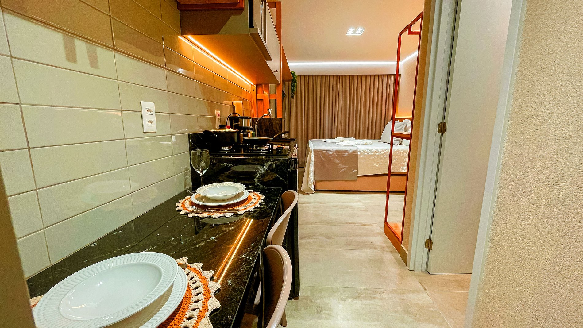O charmoso flat é a escolha ideal para quem busca conforto, praticidade e uma excelente localização. Disponibilizamos enxoval de cama , com lençois e toalhas, bem como alguns utensilios de cozinha para preparar pequenas refeiçoes no conforto do seu proprio espaço. Como cortesia colocamos alguns amenites. O prédio tem uma vista incrivel da orla do Bessa, oferecendo um fácil acesso à praia. Temos um espaço de snookbar, onde pode relaxar ou quem precisar de um espaço para trabalhar remotamente com uma linda vista do mar.