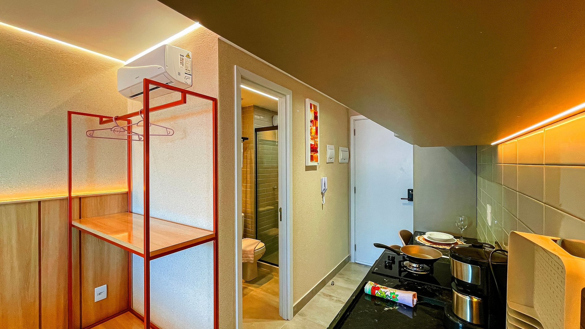 Nossas acomodações são bastante aconchegantes, proporcionando a sensação de estar em casa. Trata-se de um apartamento completo, adequado para estadias prolongadas, garantindo o máximo de conforto.