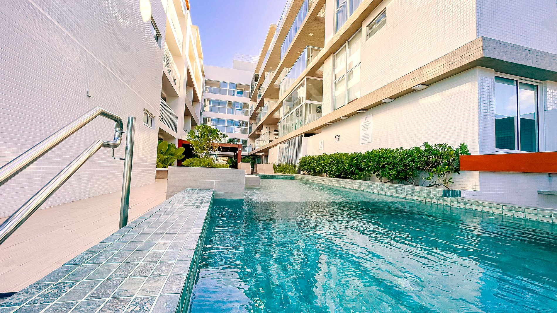 Conta com uma piscina aquecida com vista deslumbrante para o mar, academia completa para quem deseja manter a rotina em dia, além de brinquedoteca para as crianças se divertirem. O condomínio conta com um mini mercado 24 horas e lavanderia OMO à disposição dos hóspedes, proporcionando ainda mais praticidade durante a estada.